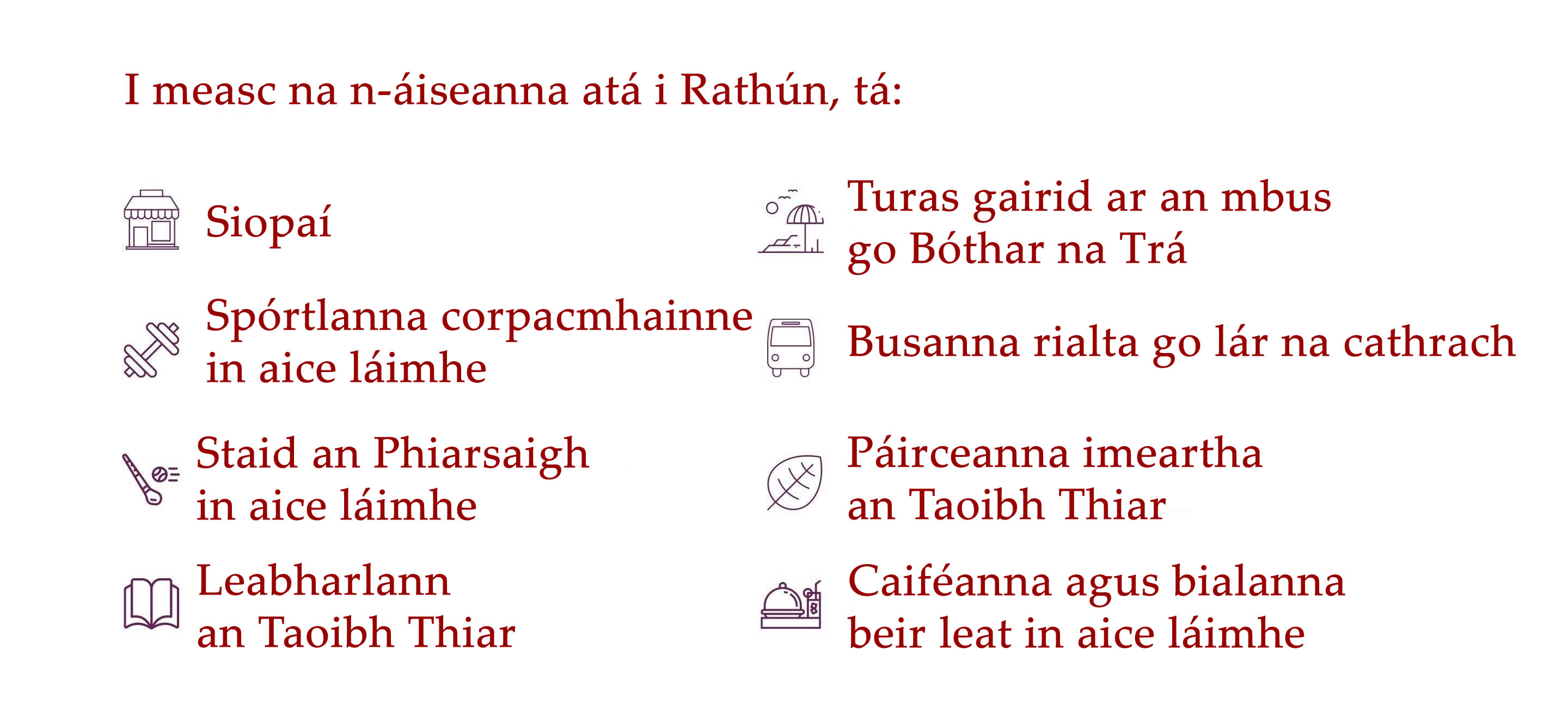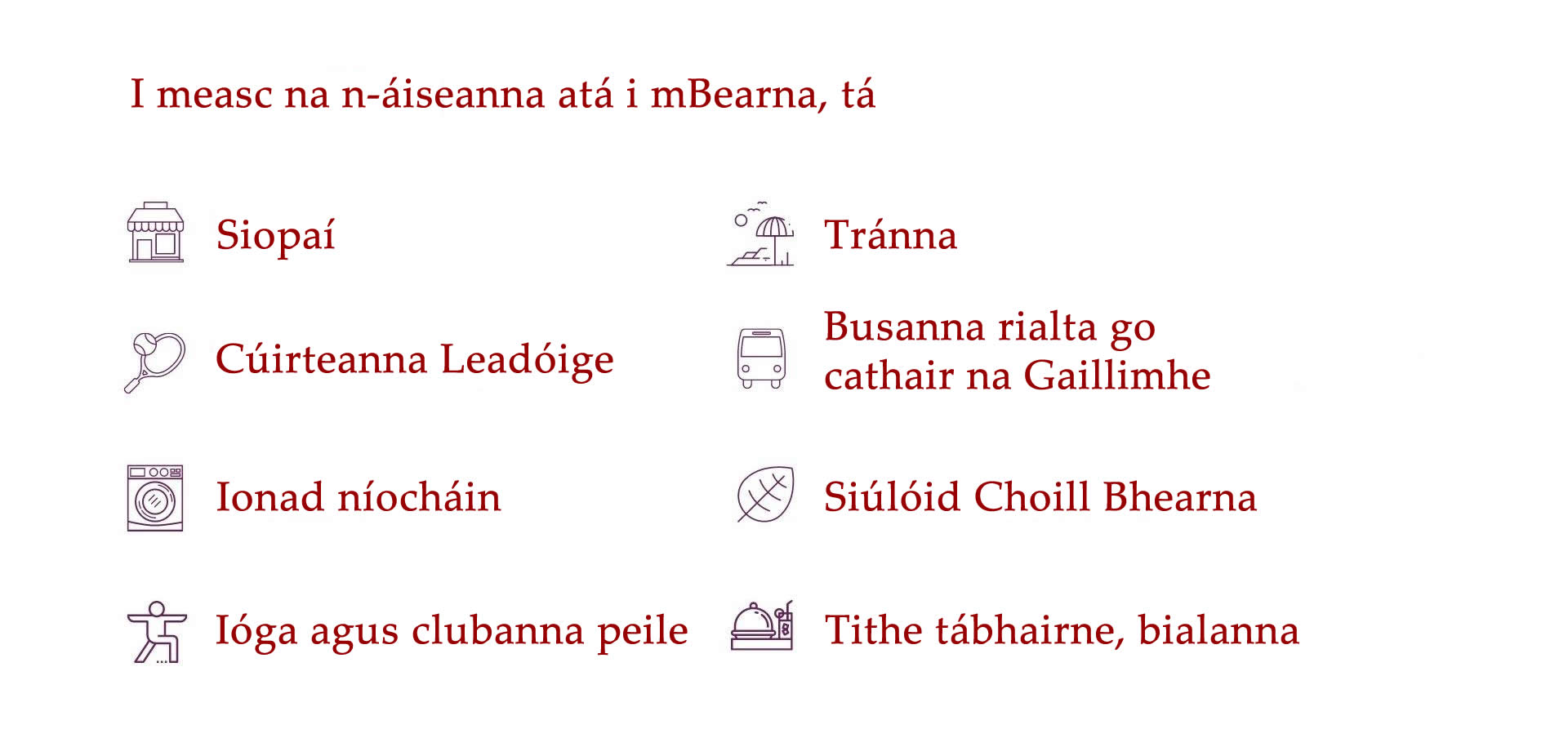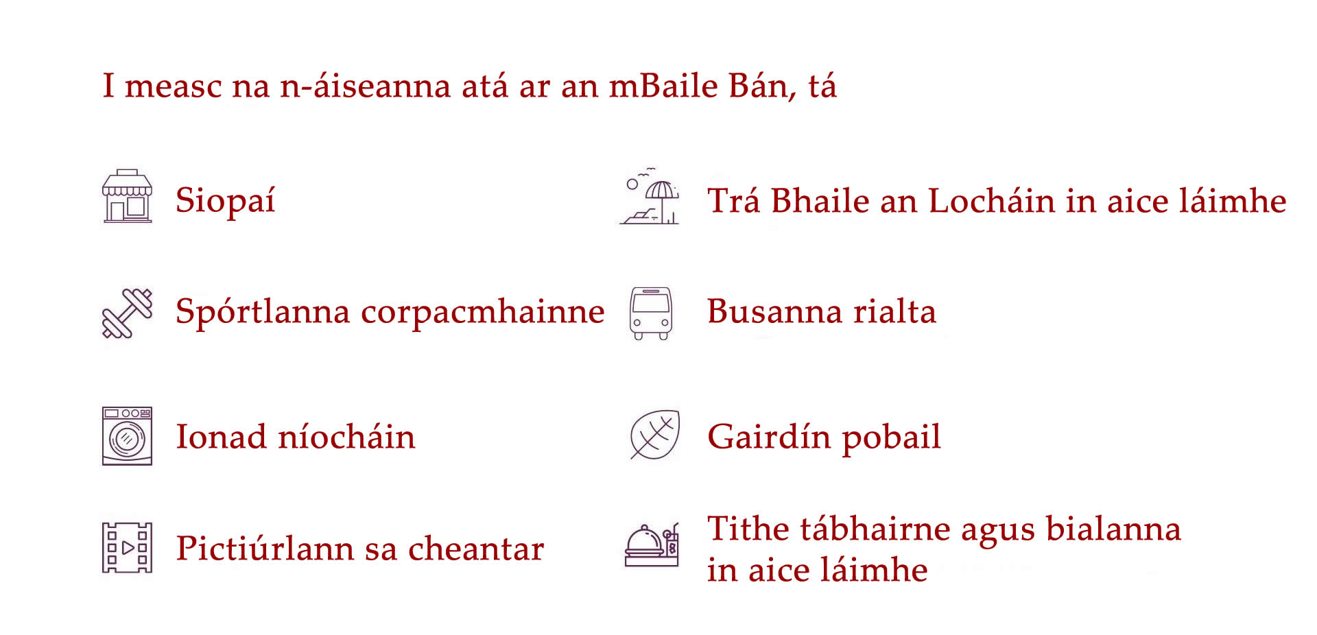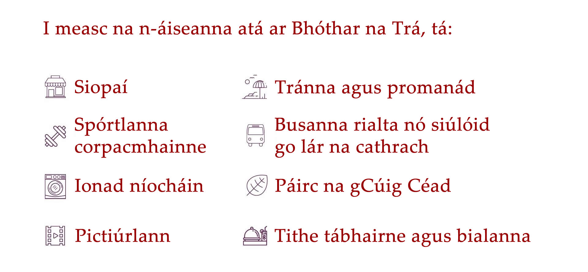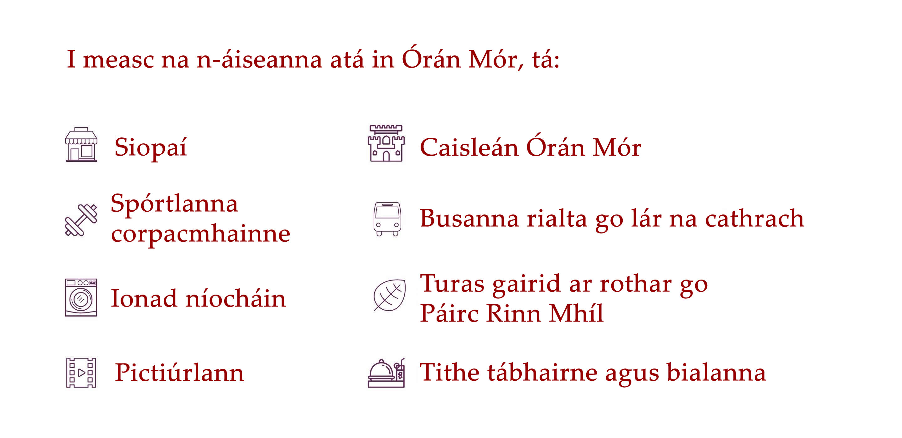 ​Tá níos mó eolais faoi limistéir lóistín na Gaillimhe le fáil thíos.