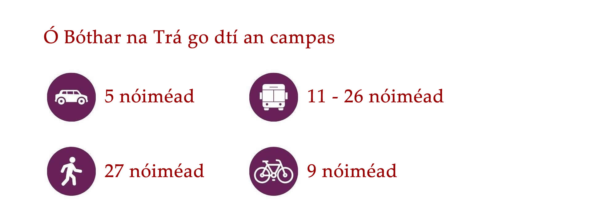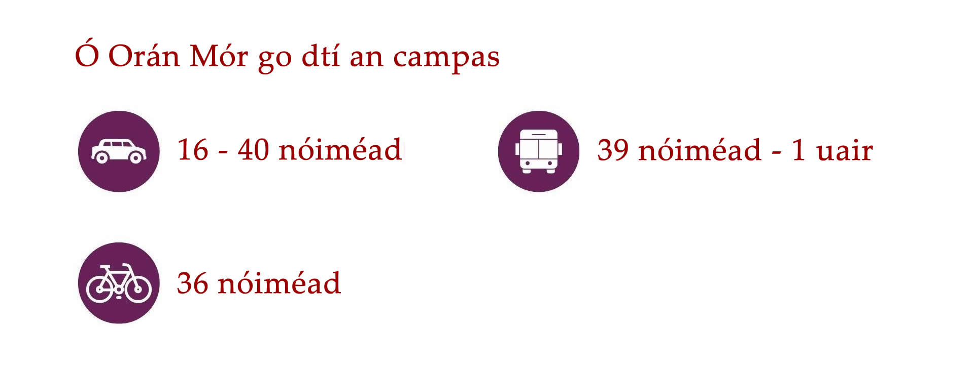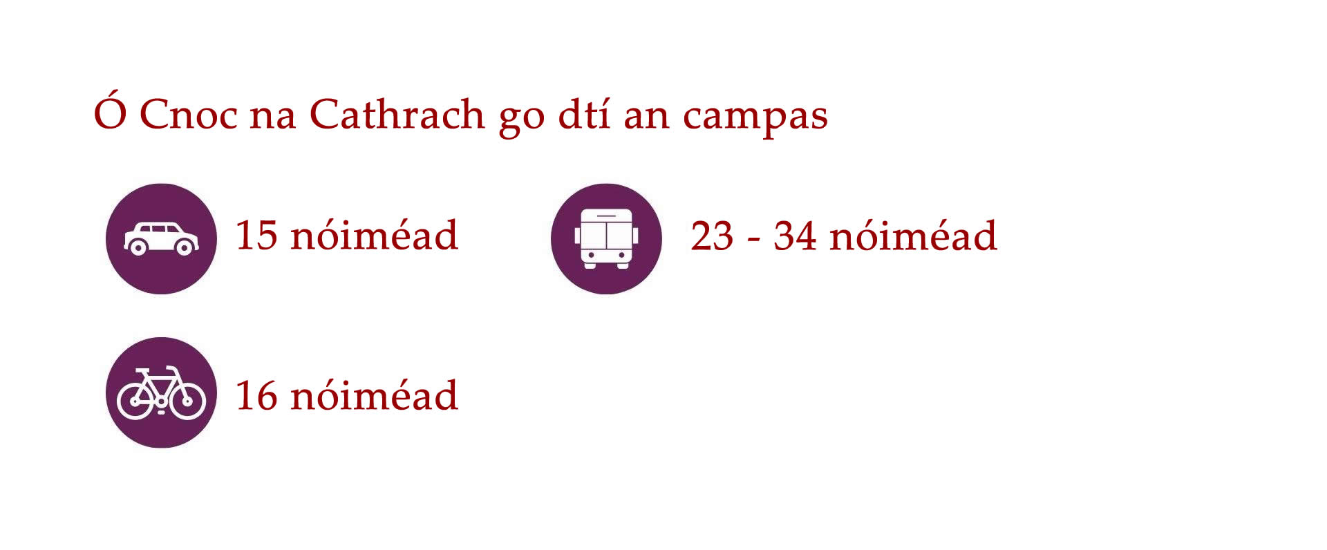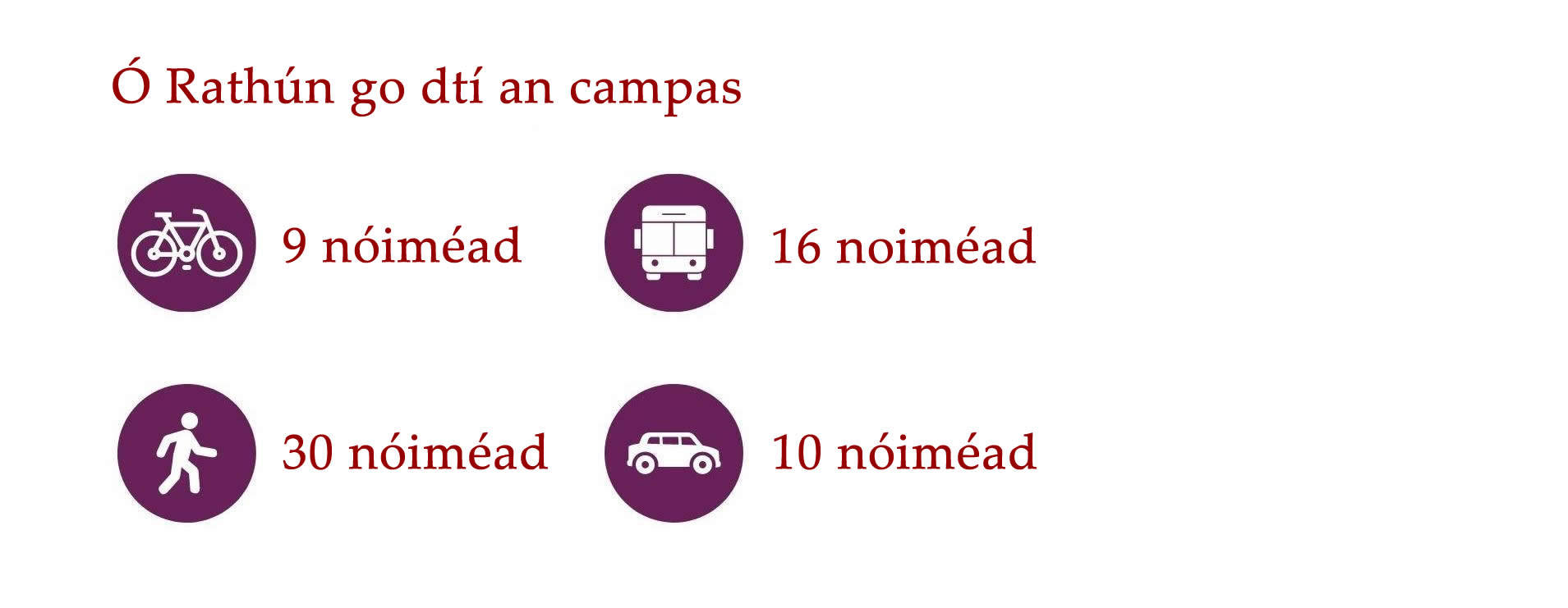 Cé go bhfuil an-éileamh ar thithe i nGaillimh, tá roghanna éagsúla ar fáil do mhic léinn ar fud Chathair na Gaillimhe agus an cheantair máguaird. Is iomaí bealach bus ar fud na Gaillimhe agus traenacha chuig na ceantair máguaird. Is féidir leat rothar athláimhe a cheannach go háitiúil freisin nó rothair a fháil ar cíos TFI bikes